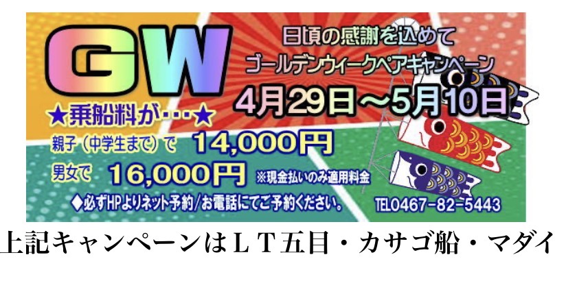 ライト五目、、カサゴ船、、マダイの3種目です