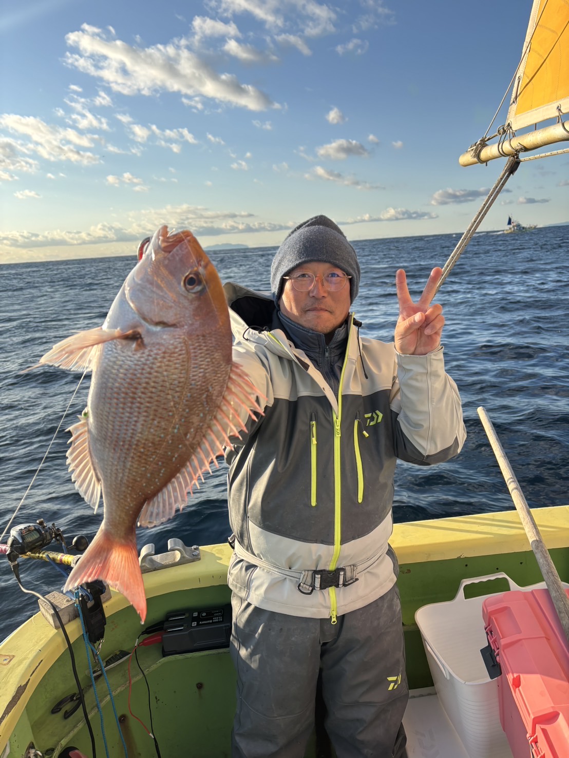 さて!!今日はマダイ2隻だしです