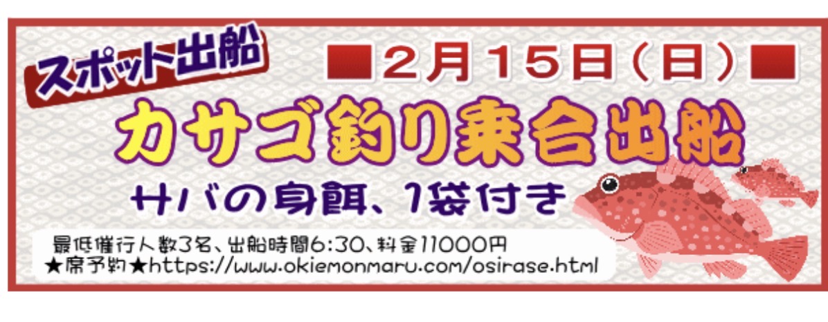 前回お天気で、欠航となりましたカサゴ船!!